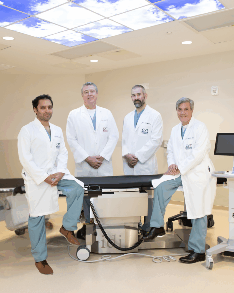 The endovascular center at CVT is a specialized outpatient facility dedicated to minimally invasive procedures that diagnose and treat a wide range of vascular conditions. These procedures involve using advanced imaging technology, such as fluoroscopy, to guide small, flexible catheters and other instruments through blood vessels to targeted areas of the body. They are typically less invasive than traditional surgery and involve shorter recovery time, less discomfort, and reduced risk of complications. The highly skilled medical professionals at CVT’s Endovascular Center include board certified vascular surgeons, specialized nurses, and radiology technologists, all working in collaboration to perform intricate and life-changing procedures. Together, they treat conditions such as arterial blockages, aneurysms, embolisms, and certain types of tumors.